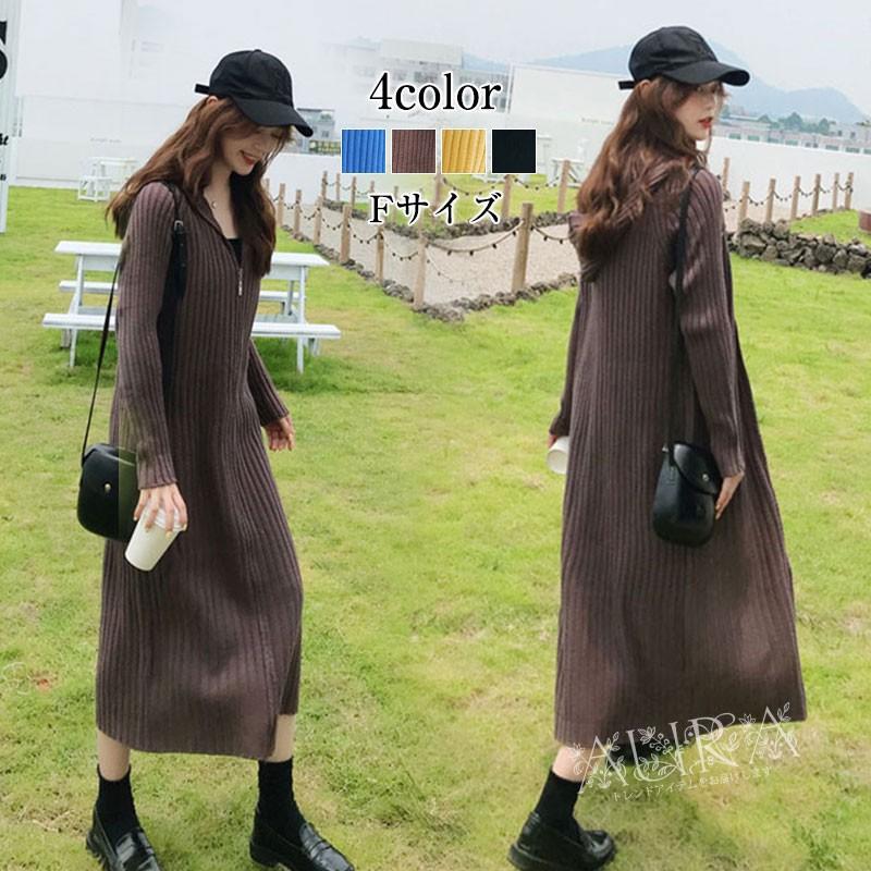 Qoo10 秋 冬 韓国 ロング ワンピース カーデ レディース服